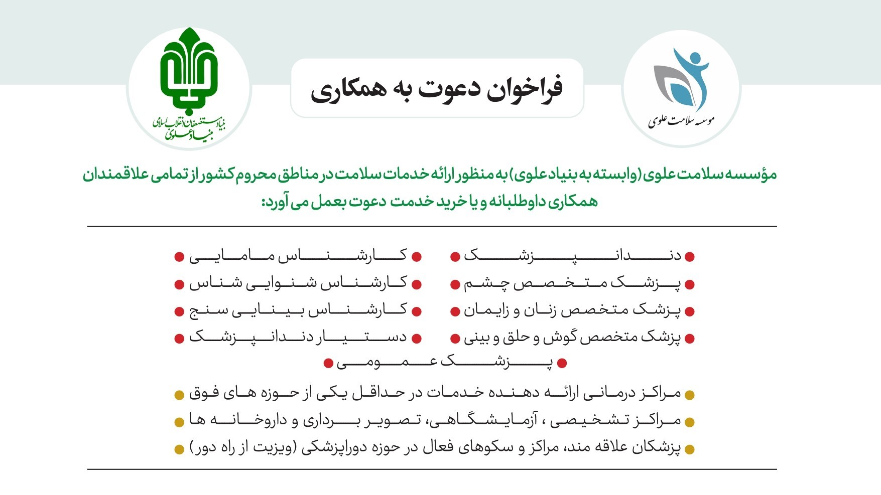 مؤسســه ســامت علوی، به عنــوان بازوی بنیــاد علوی در حــوزه ارتقــای ســامت ماموریــت دارد در چارچــوب طــر ح اســما )ارتقــای ســامت محرومیــن ایــران( در مناطق هدف بنیاد علوی، خدمات سالمت ارائه نمایدعلت اینکه این معاونت شعار خود را پیشرانی در توسعه اشتغال پایدار و محرومیت زدایی کشور قرار داده است، توسعه زنجیره مجریان و تسهیلگران و رشد و آموزش آنها در راستای احصای نیاز مناطق هدف بنیاد علوی در زمینه اشتغال است که این امر تا کنون به صورت مطلوبی محقق شده است.